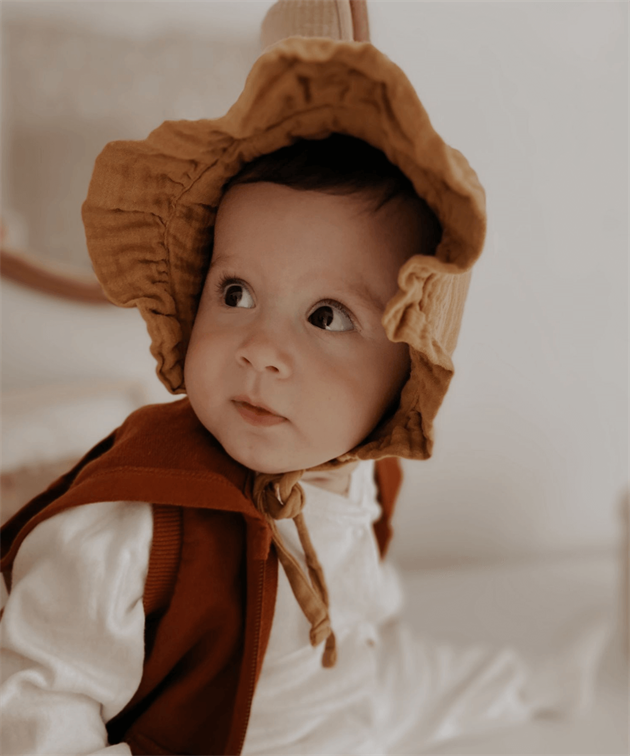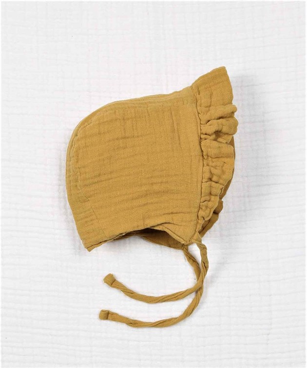 Βαμβακερό Bonnet από Ύφασμα Μουσελίνας - Μουσταρδί