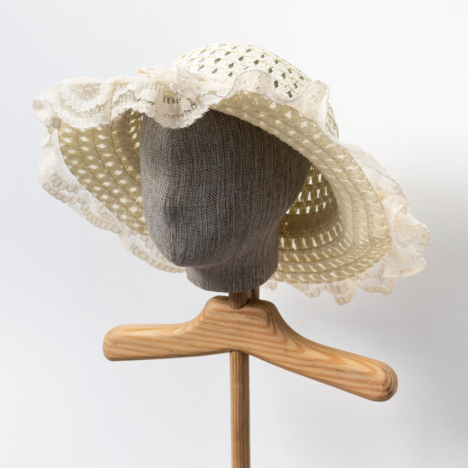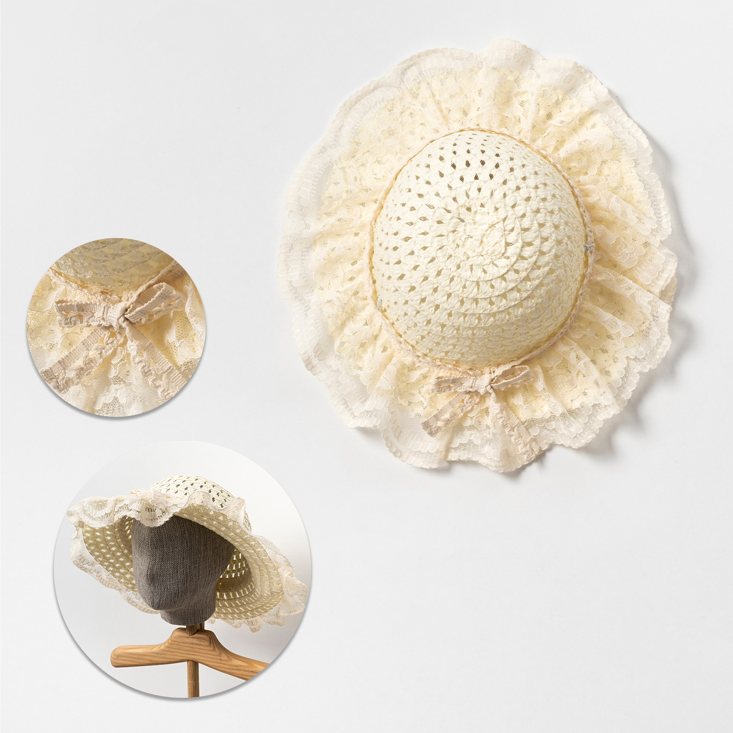 Καπέλο Ρομαντικό με Ψάθινο και Δαντέλα - Εκρού