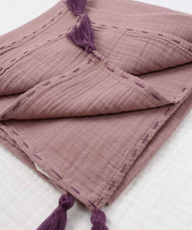 Πάνα Αγκαλιάς από Βαμβακερή Μουσελίνα με Ραφές και Κρόσια στις Άκρες - Σάπιο Μήλο