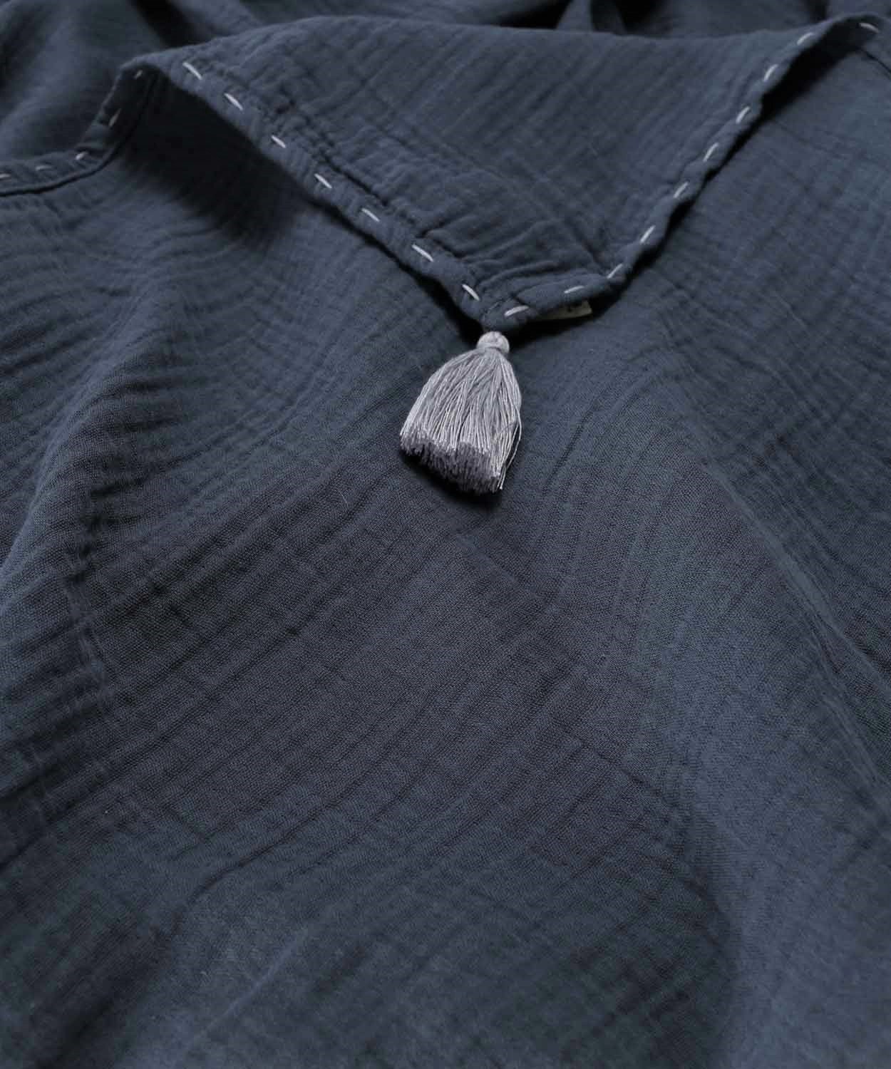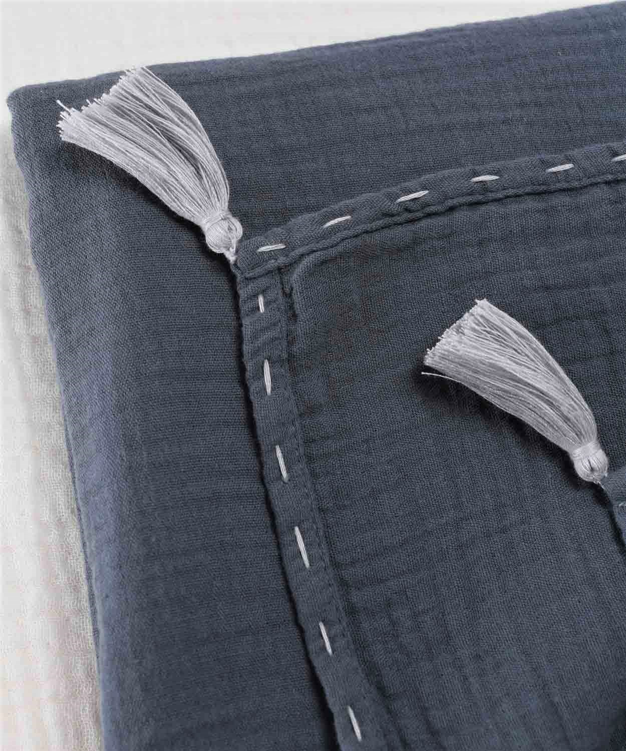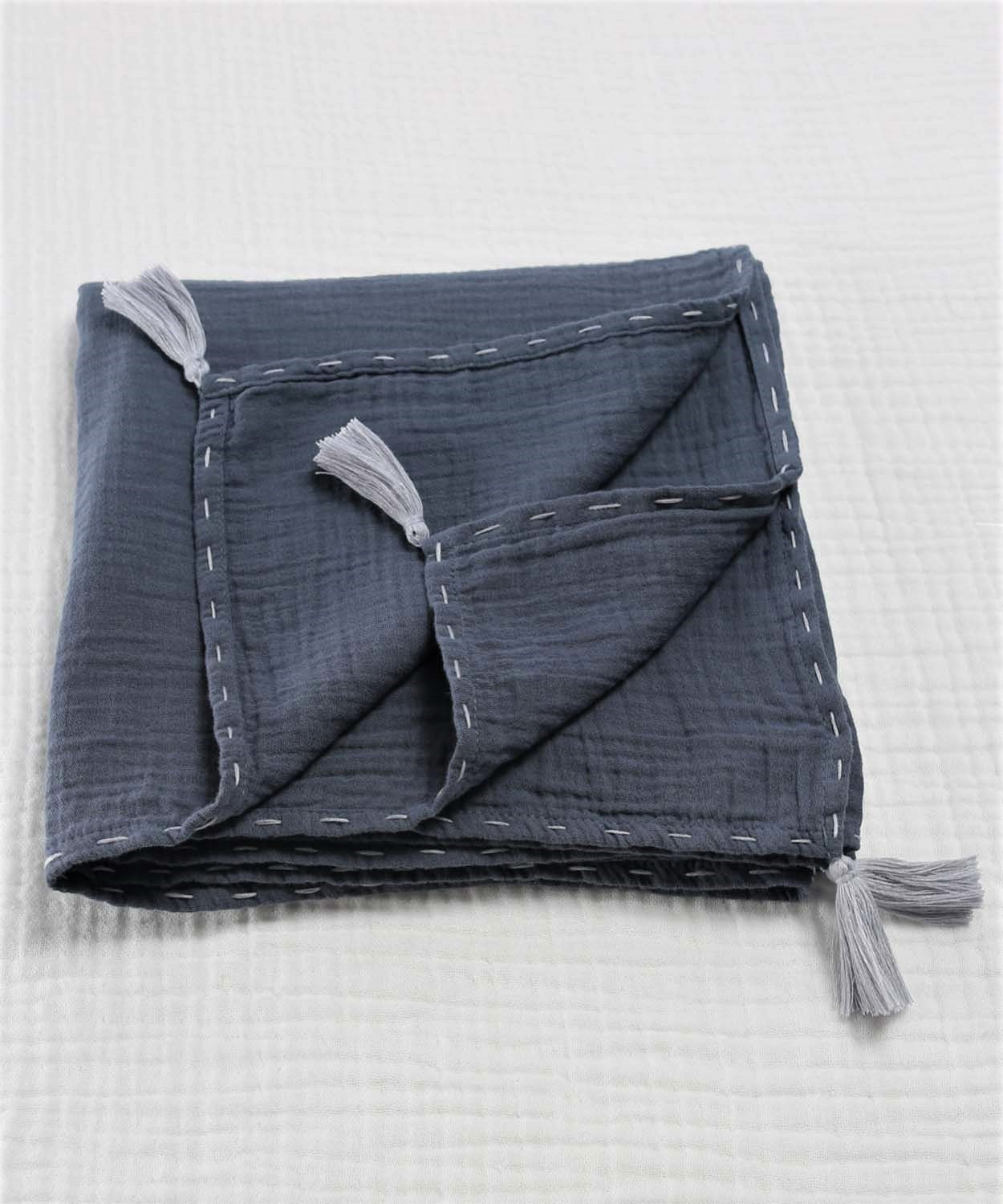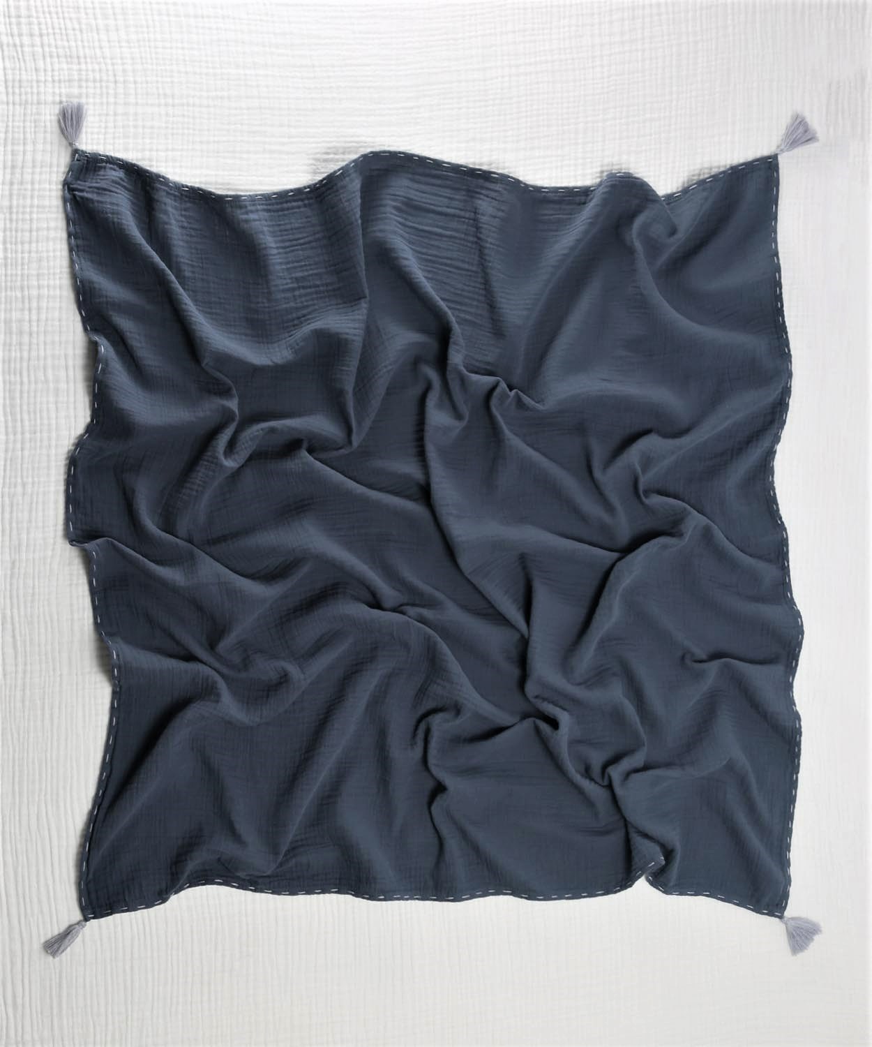 Πάνα Αγκαλιάς από Βαμβακερή Μουσελίνα με Ραφές και Κρόσσια στις Άκρες - Ανθρακί