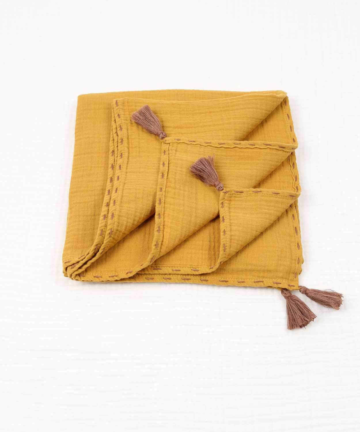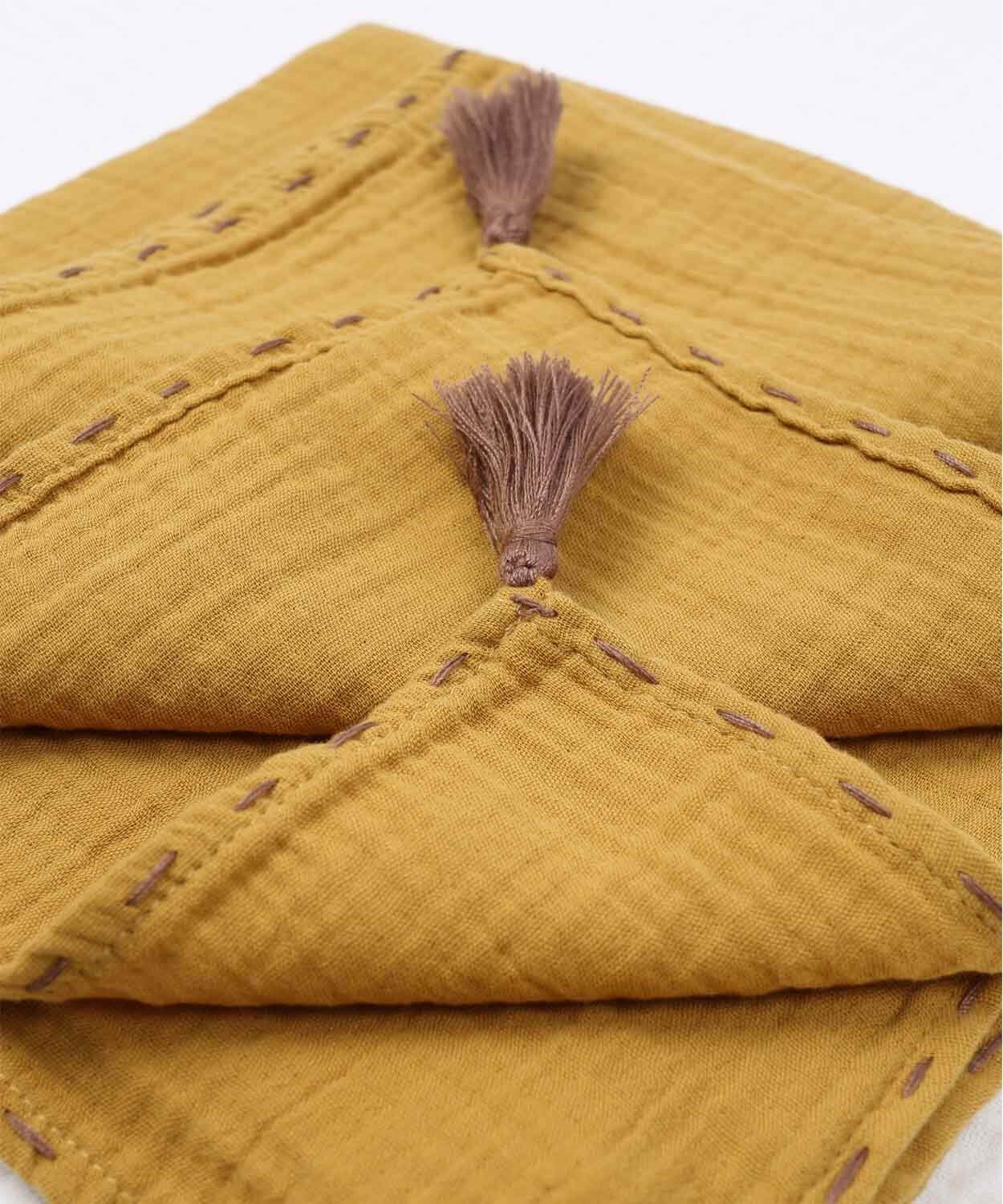 Πάνα Αγκαλιάς από Βαμβακερή Μουσελίνα με Ραφές και Κρόσσια στις Άκρες - Μουσταρδί